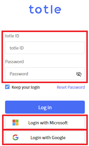 Totle Account ID/Password Login